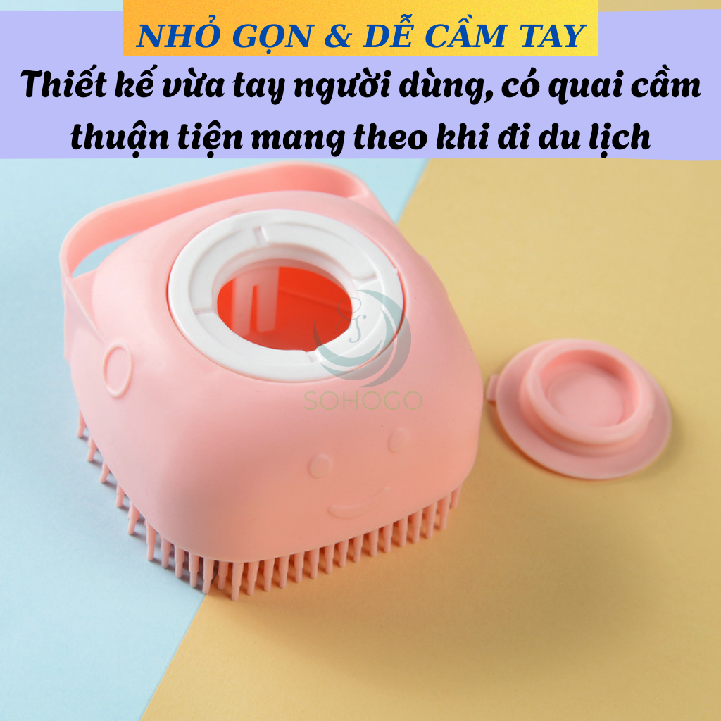 Bàn chải tắm silicon thông minh là sản phẩm kết hợp giữa chức năng làm sạch, massage và tạo bọt một cách tiện lợi. Thiết kế hình hộp nhỏ gọn, dễ thương, phù hợp với mọi đối tượng sử dụng từ trẻ nhỏ đến người lớn. Đặc biệt, bên trong có ngăn chứa sữa tắm/xà phòng, chỉ cần bóp nhẹ là bọt tự động chảy ra đầu gai silicon, giúp tiết kiệm thời gian và công sức khi tắm.