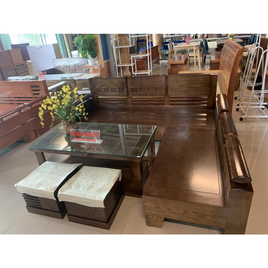Bộ bàn ghế sofa phòng khách góc L gỗ sồi màu óc chó _ Đồ Gỗ Phúc Long