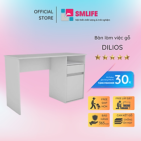 Mua tại TiktokMang đậm phong cách nội thất đơn giản, bàn làm việc gỗ SMLIFE Dilios là một sự bổ sung hoàn hảo cho phòng làm việc, phòng đọc sách của bạn. Bàn làm việc Dilios được thiết kế với nhiều tầng kệ và ngăn kéo mang đến nhiều không gian giúp bạn tổ chức sách vở và các vật dụng trang trí thoải mái. Sản phẩm là một giải pháp phù hợp cho những văn phòng hoặc căn hộ diện tích nhỏ. Sử dụng vật liệu ván ép công nghiệp MDF chống ẩm phủ Melamine cao cấp giúp bàn làm việc, bàn học gỗ SMLIFE có độ bền cao, chống trầy và chống ẩm rất tốt. Bạn có thể tự lắp đặt sản phẩm dễ dàng với các phụ kiện và hướng dẫn đi kèm. ĐẶC ĐIỂM SẢN PHẨM: