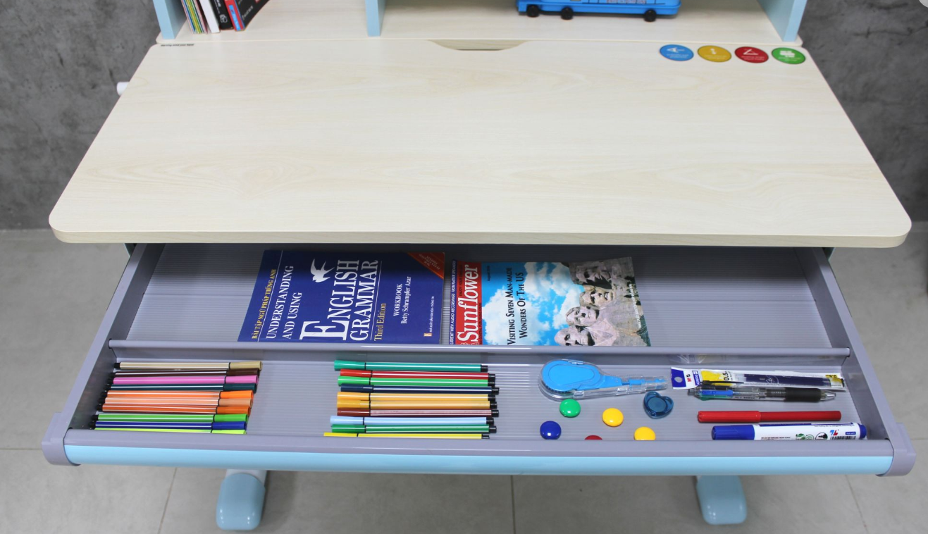 - Tên sản phẩm: Bàn học trẻ em thông minh kèm kệ sách thương hiệu IGA - KHÔNG KÈM GHẾ - Chất liệu: Mặt gỗ mdf phủ melamin chống xước chống nước, chân thép chống