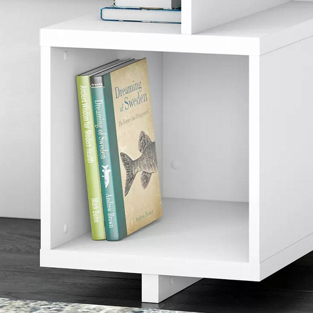 - Tên sản phẩm: Bàn làm việc IGA kèm kệ sách decor phong cách minimalism - Màu sắc: Trắng - Chất liệu: Chân thép phủ sơn tĩnh điện, mặt gỗ mdf phủ melamin chống xước