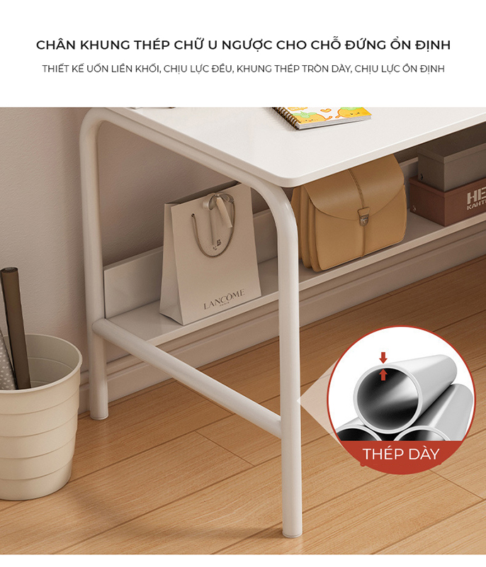 Chất liệu: Chân thép phủ sơn tĩnh điện, mặt gỗ mdf phủ melamin chống xước