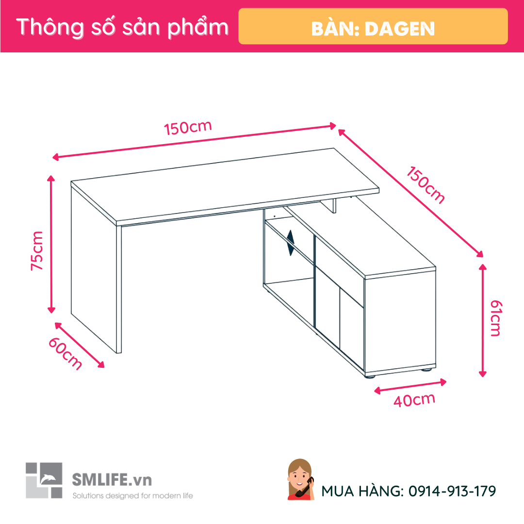 Giới thiệu bàn làm việc chữ L Darvell | SMLIFE