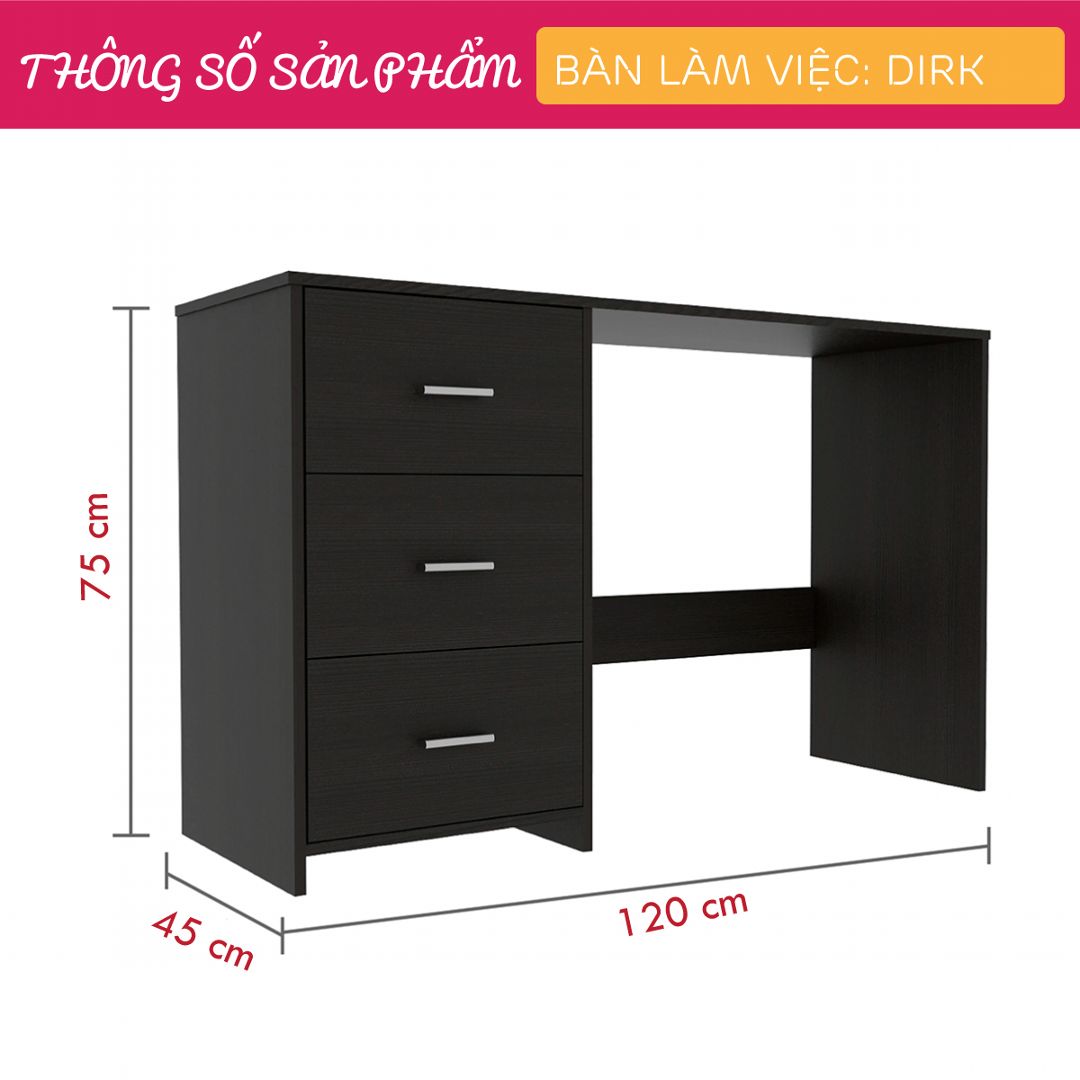 Mua tại TiktokMang đậm phong cách nội thất đơn giản, bàn làm việc gỗ SMLIFE Dirk là một sự bổ sung hoàn hảo cho phòng làm việc, phòng đọc sách của bạn. Bàn làm việc Dirk được thiết kế với nhiều tầng kệ và ngăn kéo mang đến nhiều không gian giúp bạn tổ chức sách vở và các vật dụng trang trí thoải mái. Sản phẩm là một giải pháp phù hợp cho những văn phòng hoặc căn hộ diện tích nhỏ. Sử dụng vật liệu ván ép công nghiệp MDF chống ẩm phủ Melamine cao cấp giúp bàn làm việc, bàn học gỗ SMLIFE có độ bền cao, chống trầy và chống ẩm rất tốt. Bạn có thể tự lắp đặt sản phẩm dễ dàng với các phụ kiện và hướng dẫn đi kèm. ĐẶC ĐIỂM SẢN PHẨM: