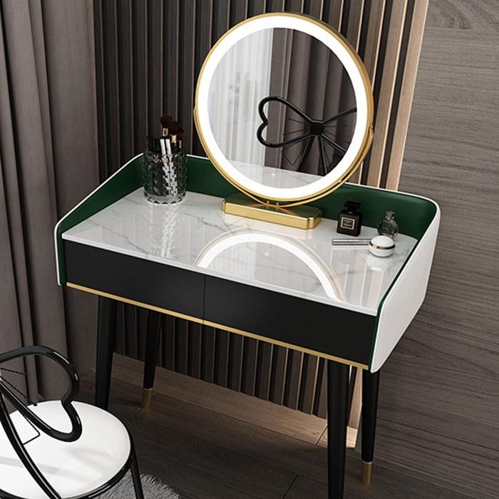 - Bàn phấn có kèm gương tròn gắn LED tiện lợi, phong cách độc đáo
