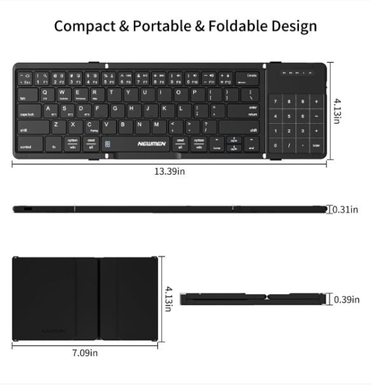 ✨Bàn phím gấp gọn không dây Bluetooth Newmen BK66 Foldable với Touchpad - Hàng chính hãng