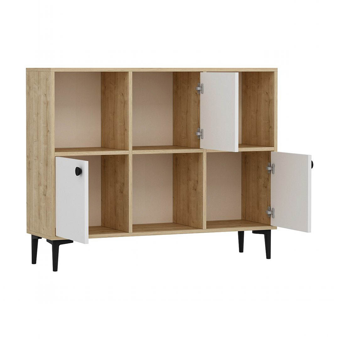 Chất liệu làm từ gỗ MFC, bề mặt phủ Melamine chống thấm, dễ dàng lau chùi Khung tủ màu nâu sẫm vân gỗ walnut kết hợp cánh tủ màu trắng hài hòa Thiết kế thông