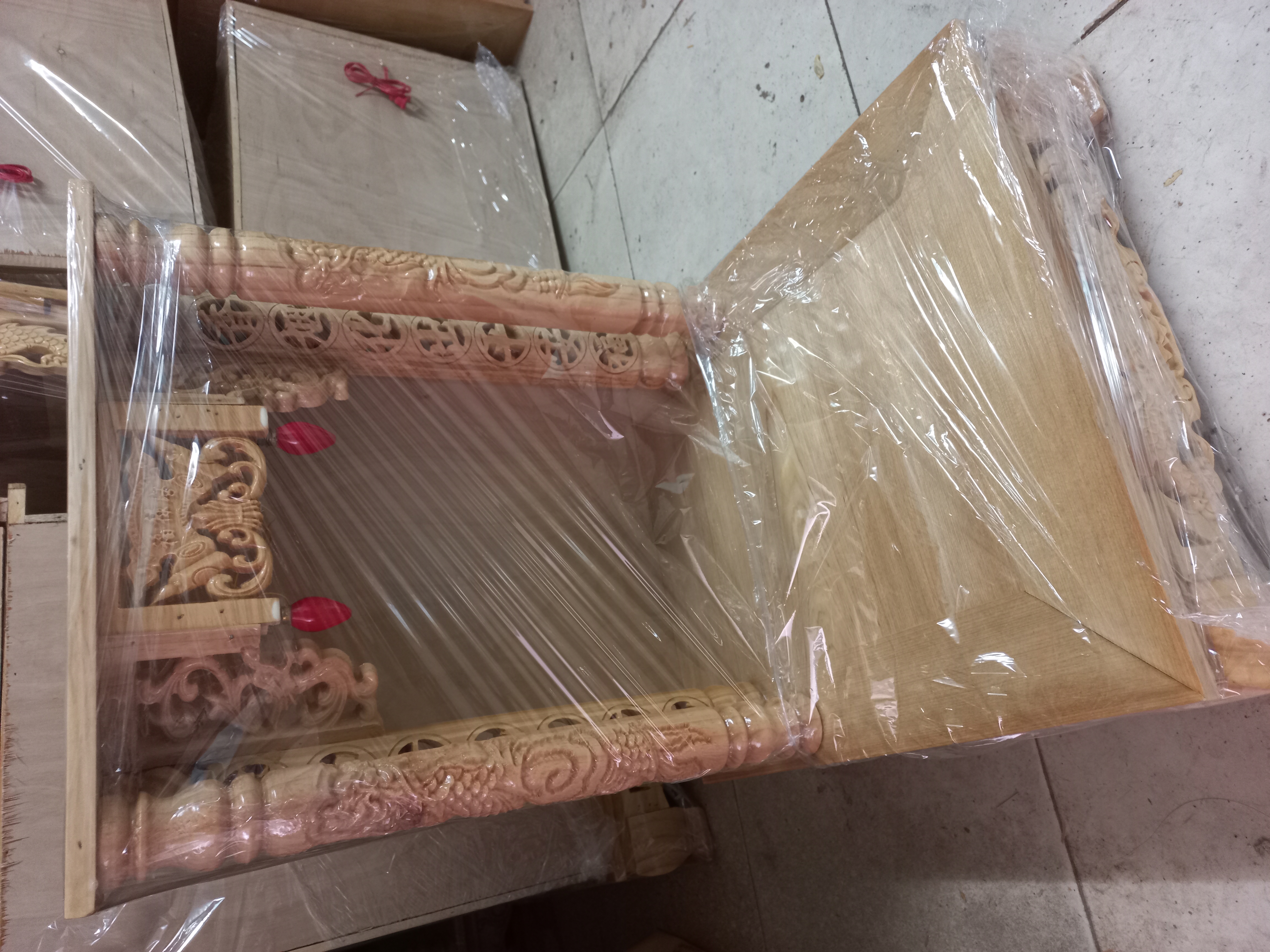 _ Bộ bàn thờ chung cư được làm bằng chất liệu gỗ sồi nga tự nhiên 100% _ Kích thước bàn thờ 89×48cm + ám khói 41×61cm khung gỗ sồi cnc chắn bằng mica+ chữ
