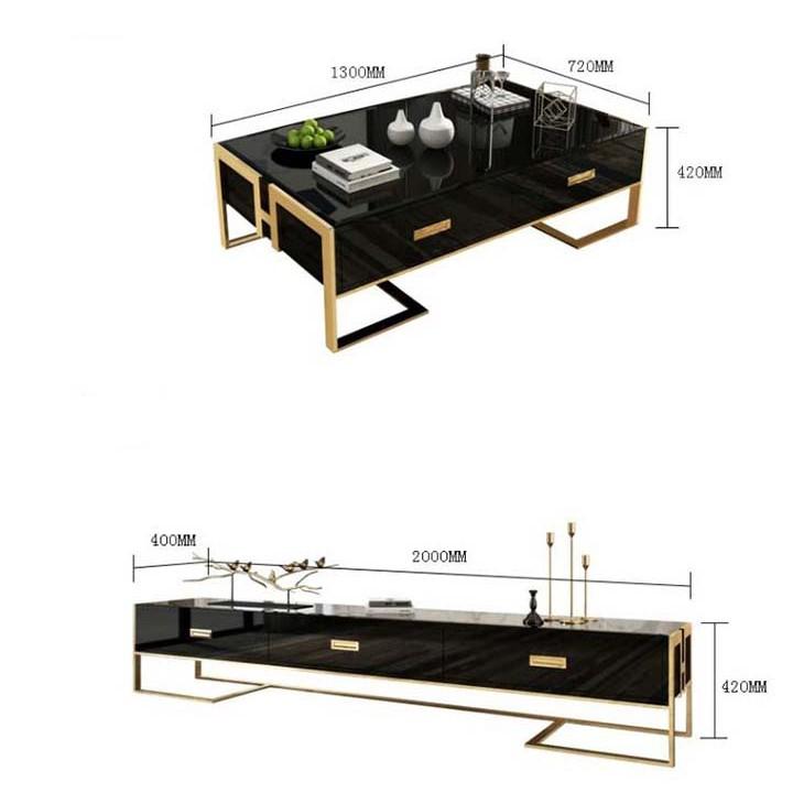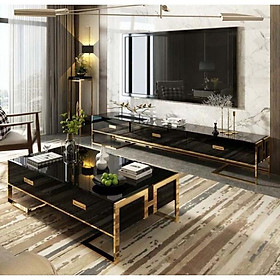 Mua tại TiktokQuý khách hàng vui lòng chọn sản phẩm nhà bán JUNO SOFA để nhận được sản phẩm đúng với chất lượng Kệ tivi và bàn trà được nhập khẩu nguyên kiện 100%. 1 Bộ: 1 bàn sofa + 1 kệ tivi. Chất Liệu: Khung Inox – Gỗ công nghiệp MDF – Mặt kính cường lực 3C. Kích thước: Bàn sofa: 1300720420 mm. Kệ tivi: 2000400420 mm Màu sắc: Vàng – Đen. Phong cách: Đơn giản mà hiện đại, Không hoa văn, Không cầu kì