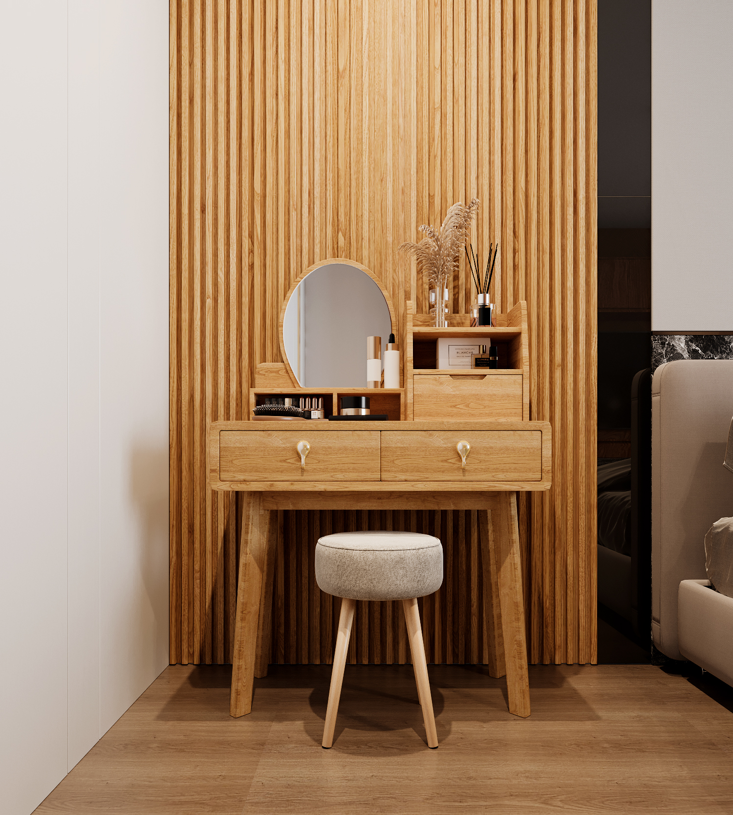 Mang đậm phong cách nội thất đơn giản, bàn trang điểm gỗ Megan là sự bổ sung hoàn hảo không chỉ riêng phòng ngủ mà bất cứ không gian nội thất nào của bạn. Bàn trang điểm Megan được