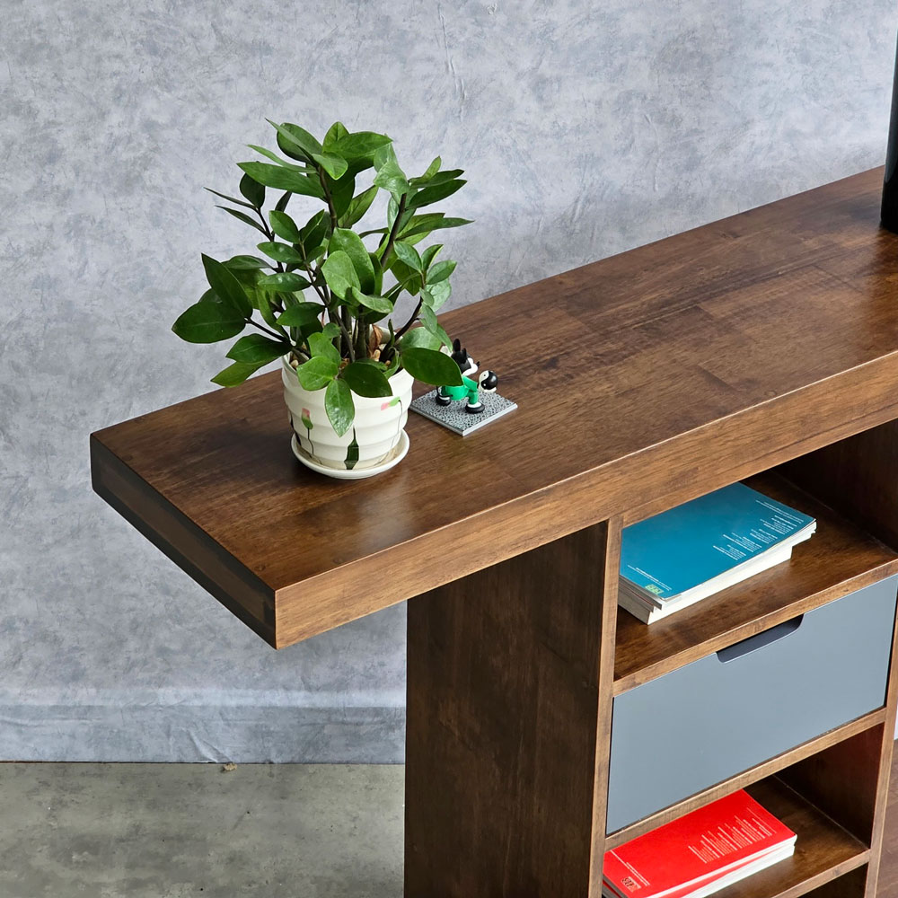 Bàn trang trí gỗ CSTCT063 sở hữu kiểu dáng mạnh mẽ với phần mặt gỗ ghép hộp dày 5cm mang đến sự chắc chắn, cứng cáp cho sản phẩm. Với thiết kế 3 tầng kết hợp hộc kéo ở phần giữa bàn giúp bạn tăng không gian trưng bày và lưu trữ các món đồ yêu thích một cách dễ dàng. Gỗ cao su tự nhiên sơn màu góc chó cực đẹp mắt, hoặc bạn có thể yêu cầu màu sắc theo bảng màu HomeOffice. THÔNG TIN CHI TIẾT SẢN PHẨM :