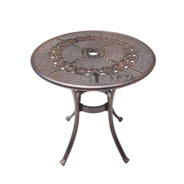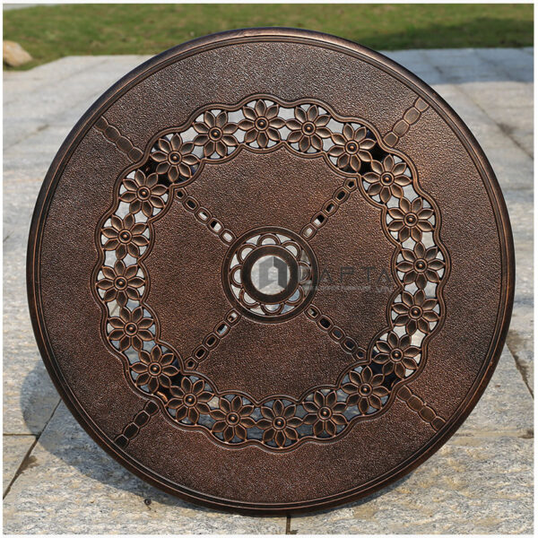 Bàn tròn cafe sân thượng ngoài trời màu đồng cổ điển Bàn nhôm đúc cao cấp bền đẹp HCM TE2025-65A Bàn nhôm đúc bền bỉ, không bị gỉ sét rất thích hợp sử dụng ngoài