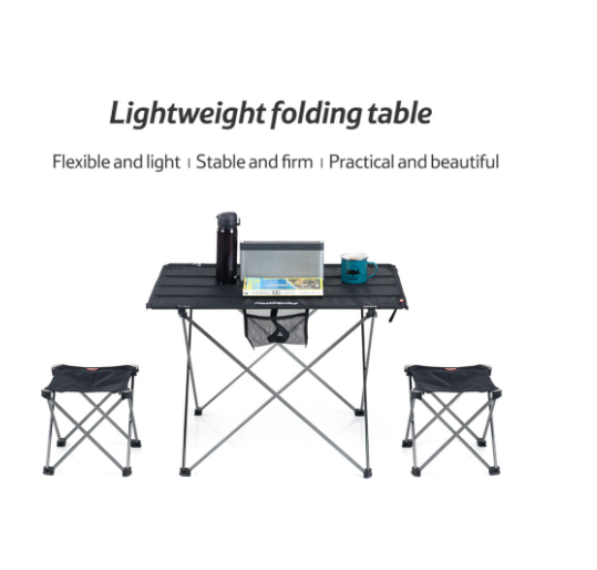 Bàn gấp di động, bàn cắm trại (màu đen) ️Được làm từ chất liệu tốt, chắc chắn, bền bỉ, tuổi thọ cao. ️Có thể gấp lại và trải ra để sử dụng dễ dàng, tiện