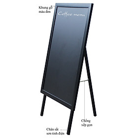 Bảng đen menu viết phấn khung gỗ đen là sản phẩm không thể thiếu trong các nhà hàng, khách sạn, các quán ăn, quán cafe muốn giới thiệu sản phẩm mới, lên thực đơn và
