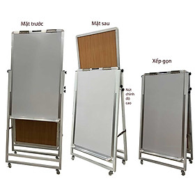 Bảng có 2 mặt, kích thước mặt bảng là 1.2x1.6m Cấu tạo sản phẩm: BẢNG: – Mặt bảng: Màu trắng dùng để viết bút lông, được nhập khẩu từ Đài Loan, viết lau dễ dàng,