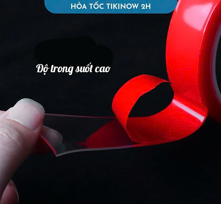 ✨Băng Keo 2 Mặt Nano Đỏ Cường Lực Trong Suốt Siêu Dính, Chịu Nhiệt, Chống Nước Rộng 20mm x 3 mét