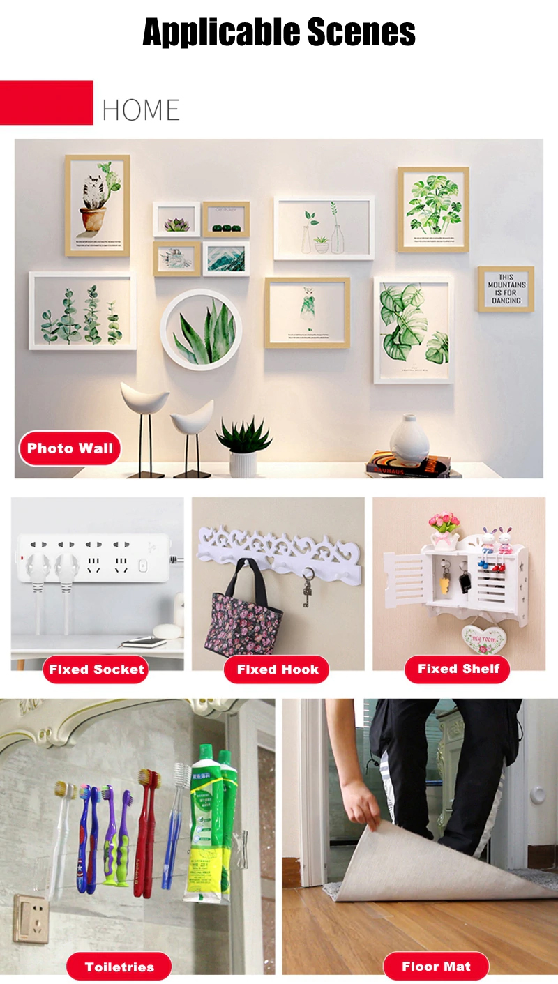 Băng dính 2 mặt đa năng trong suốt Kích thước: Rộng 3cm, dày 2mm, dài 1/3/5 mét Chịu lực nặng, chịu nhiệt tốt Độ đàn hồi cao, chống rung động Không thấm nước, chống hoá chất chống ăn mòn Hút dính mọi bề mặt Tiện lợi khi đi xa, nấu ăn, làm việc, giải trí Dễ dàng làm sạch với nước và tái sử dụng ỨNG DỤNG TRONG THỰC TẾ Cố định ổ cắm điện, đèn Led, nẹp luồng dây điện Biển hiệu quảng cáo, địa chỉ nhà, công ty Treo khung tranh vật dụng nhà tắm Dán khùn xe, trang trí đồ chơi xe hơ HƯỚNG DẪN SỬ DỤNG Lau sạch bề mặt cần dán Gỡ dán vào sản phẩm Cố định tầm 2-5 phút ( Dán móc treo nên để 24h để lực dính đạt 100%)