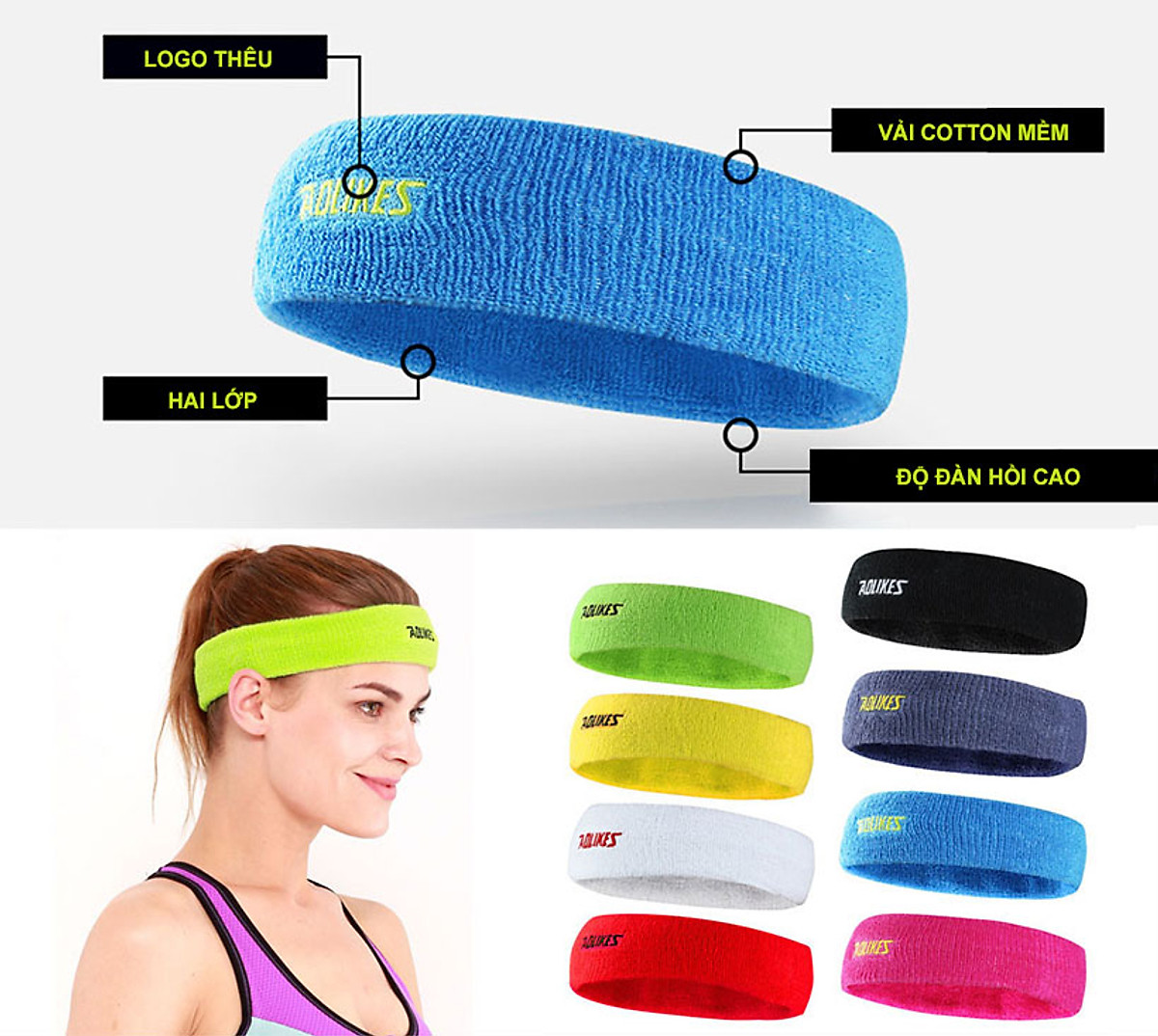 Băng trán thể thao cao cấp thấm mồ hôi đầu AOLIKES với thiết kế mỏng nhẹ, ôm sát đầu, giúp thấm hút mồ hôi trên trán nhanh chóng trong các hoạt động thể thao: leo núi, chạy bộ, đạp xe, tennis, cầu lông, yoga, tập gym...