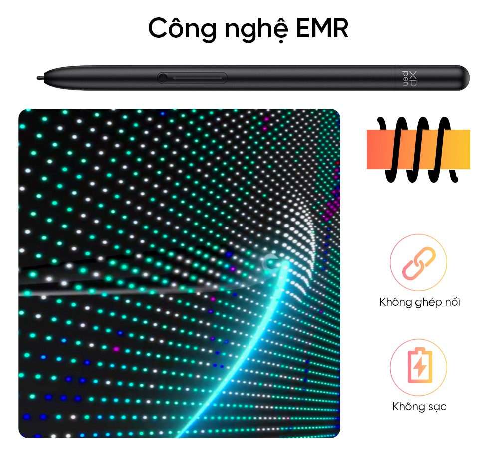 - XPPen ArtMobile – Chuẩn mực mới cho vẽ máy Hãy tưởng tượng những tác phẩm sản tạo của bạn đẹp như dựng trong studio, nhưng lại không cần đến…studio. ArtMobile của XPPen cho phép bạn sáng tạo mọi lúc mọi nơi như một người chuyên nghiệp. XP-PEN Magic drawing pad tích hợp studio chuyên nghiệp vào máy tính bảng siêu mỏng với kích thước chỉ 12.2 inch. Biến tầm nhìn thành hiện thực với tính di động cao chưa từng thấy. a. Bút cảm ứng X3 Pro – Cảm nhận sự khác biệt XP-PEN Magic Drawing Pad được trang bị chip chuyên vẽ và công nghệ EMR, bút cảm ứng X3 Pro với 16K mức lực nhấn góp phần nâng cao trải nghiệm sáng tạo trên máy tính bảng. Tinh tế, chính xác, mượt mà. b. Chip chuyên vẽ Không phải bút cảm ứng nào cũng đều được chế tạo như nhau. Bút cảm ứng X3 Pro được hỗ trợ bởi chip chuyên vẽ thông minh. Điều đó có nghĩa nó sở hữu thuật toán tiên tiến. Giúp bảo đảm hiệu suất ổn định, thông minh hơn. Và hoàn toàn phù hợp với trí nhớ cơ tay của bạn. c. 16K mức lực nhấn đầu tiên trên thế giới Cao hơn 200% so với bút cảm ứng thông thường. Cho nét vẽ mượt mà, chính xác nhất từ trước đến nay. Mỗi nét vẽ đều phản ánh đúng ý đồ của bạn. Giúp bạn phát huy tối đa sức sáng tạo và hơn thế nữa. d. Công nghệ EMR Nhờ sử dụng công nghệ cộng hưởng điện từ (EMR) tiên tiến, bút cảm ứng X3 Pro mang đến trải nghiệm vẽ kỹ thuật số trực quan, tự nhiên như vẽ trên giấy. e. Tích hợp module EMR