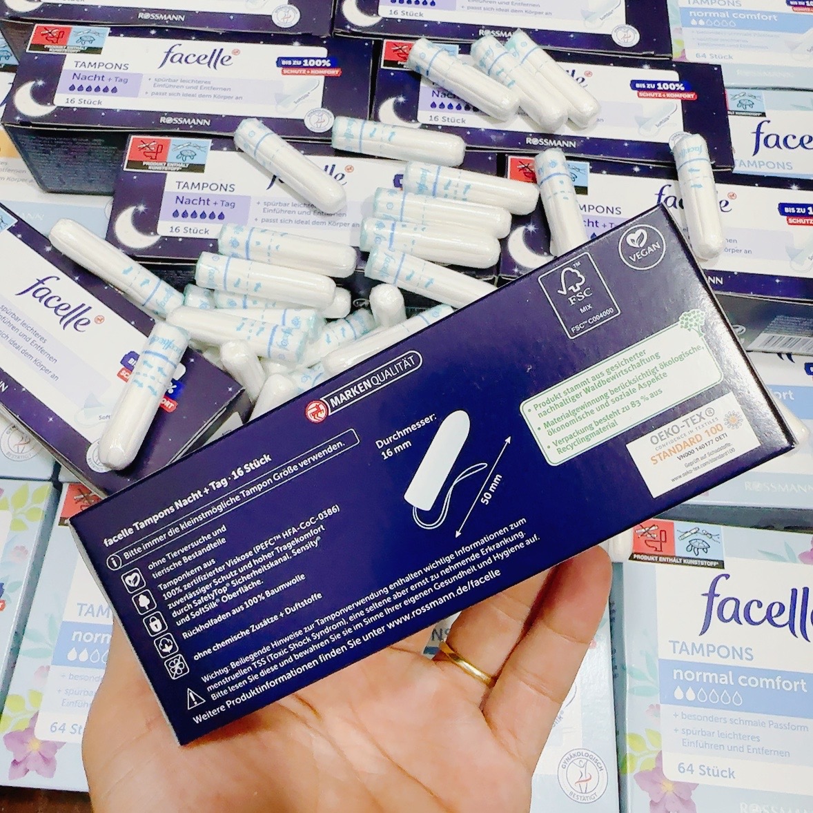 ✨BĂNG VỆ SINH Tampon FACELLE - Siêu Thấm Hút - Nhỏ Gọn - Dạng Nút Chai - Hàng Nhập Khẩu Đức - Tampons