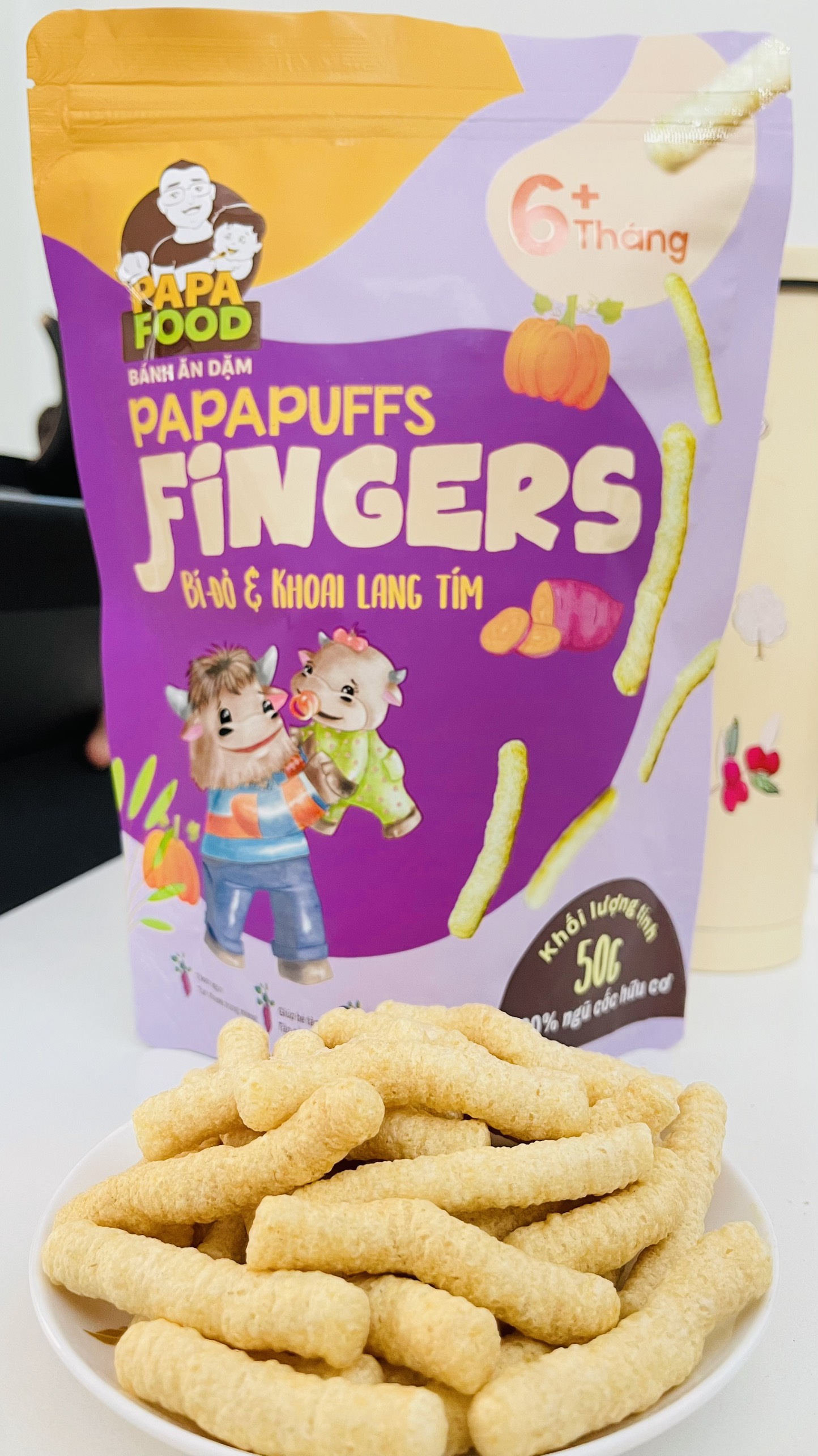 Mua tại Tiktok- Tên sản phẩm: Bánh ăn dặm PAPAPUFFS FINGERS - BÍ ĐỎ VÀ KHOAI LANG TÍM .