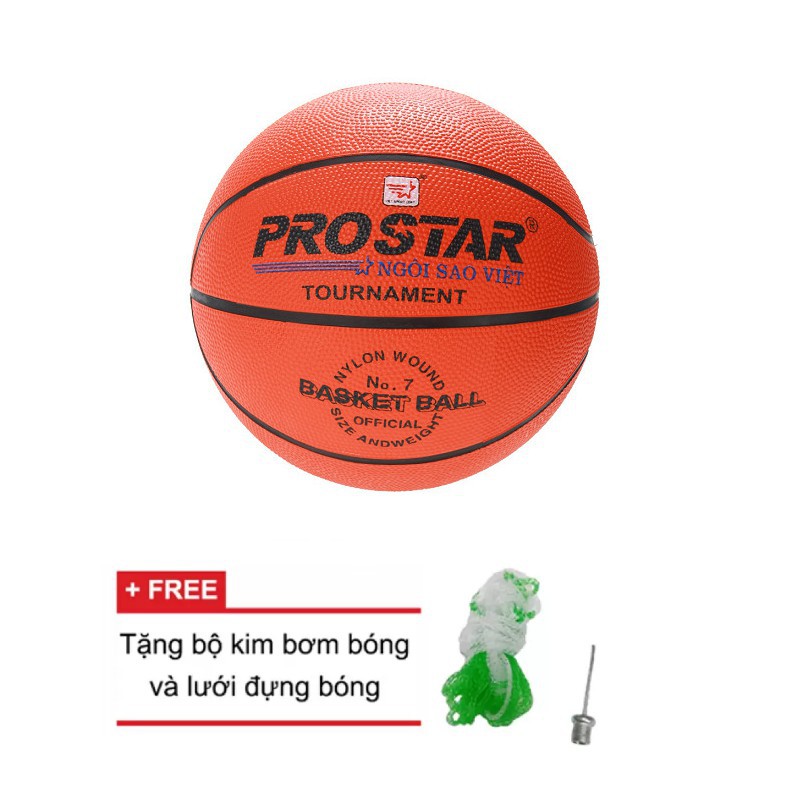 Bóng rổ Prostar - Chất liệu bằng cao su bền cao- Dạng khối cầu với cách phối màu đẹp mắt- Bóng chuyên dùng trong thi đấu - Xuất xứ: Việt Nam- Sản phẩm đi kèm có kim bơm bóng và lưới đựng quả bó...