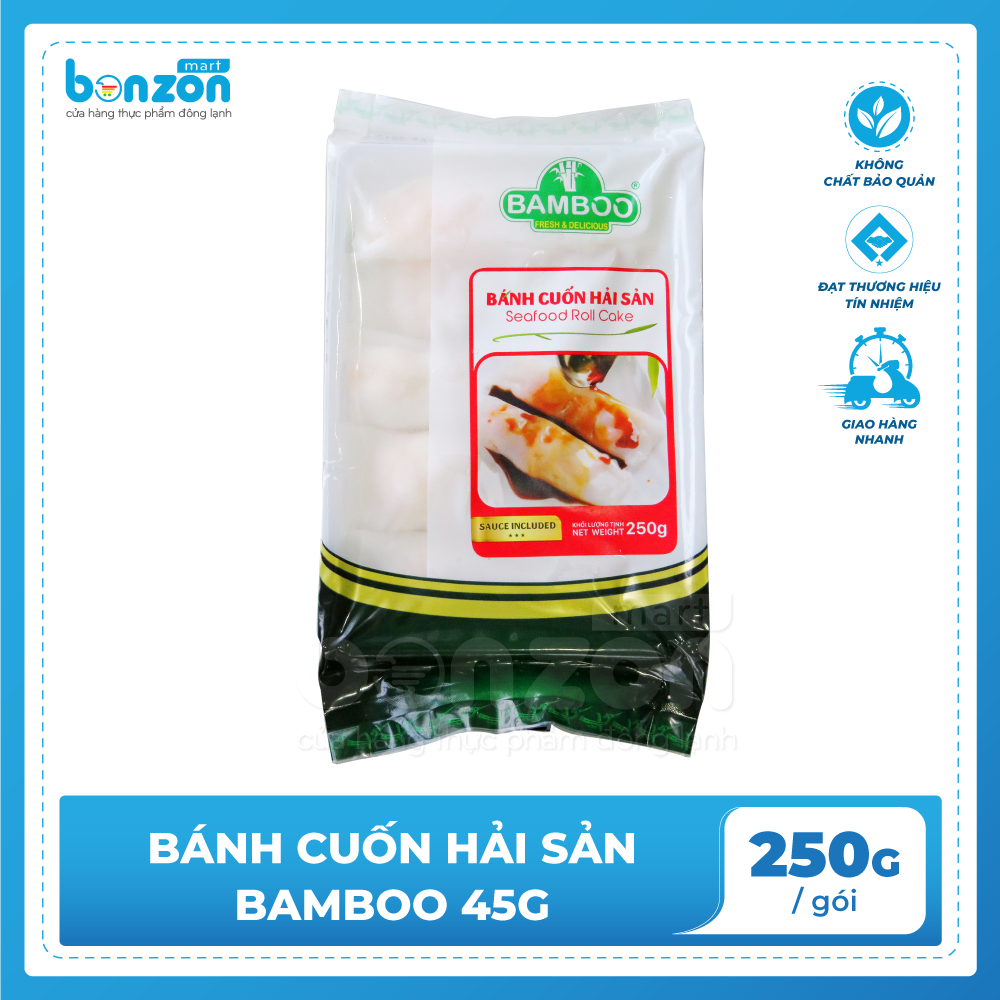 Với sản phẩm tươi sống, trọng lượng thực tế có thể chênh lệch khoảng 10%. ĐỊNH LƯỢNG: (45 g/cái x 5 cái/gói ) + 25g nước chấm THÀNH PHẦN: Tôm, sò điệp, bột gạo MÔ TẢ SẢN PHẨM: - Vỏ bột màu trắng - Vỏ bánh mỏng mềm mịn dẽo dai với phần nhân từ tôm và sò điệp có gói nước chấm bánh cuốn kèm theo CÁCH CHẾ BIẾN: - Hấp cách thủy: không rã đông, hấp 100°C, 4-5 phút - Microwave ở chế độ hấp: 1.5 - 2 phút BẢO QUẢN: - Bảo quản đông từ -15 đến -18°C. Không đông lại sau khi rã đông - Bảo quản mát từ 0°C đến 5°C trong 3 ngày HSD: 12 tháng