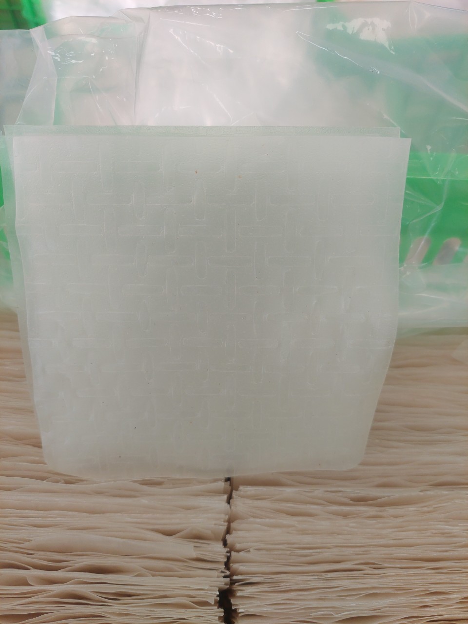 Thành phần : Muối Tinh bột gạo Nước Chỉ tiêu chất lượng Gluxit: >= 70% Protein: >= 3% Độ ẩm : 18% Hướng dẫn sử dụng Dùng làm vỏ cuốn nem Cuốn gỏi và một