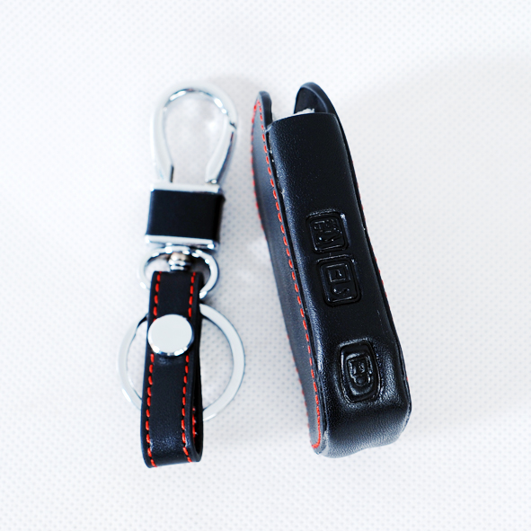 Bao da chìa khóa Kia Creato 2019 2020 2021 màu đen chỉ đỏ tặng kèm móc