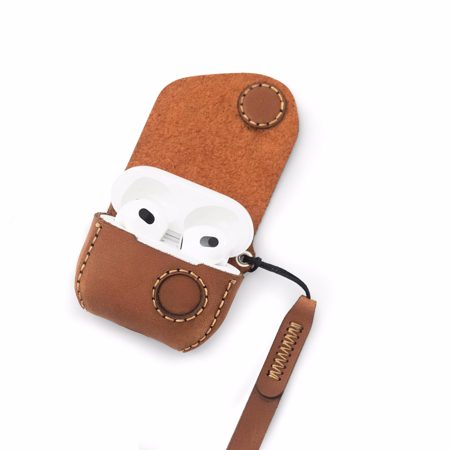 Thiết kế tối giản với đường cắt góc bo tròn mềm mại ôm sát sản phẩm, lớp da bò thô bên trong giúp làm sạch bề mặt hộp đựng tai nghe và tạo cảm giác thân thiện, thao tác đóng mở sẽ dễ dàng hơn với thiết kế nam châm và dây đeo tay thời trang tiện dụng. Tất cả tạo nên sự khác biệt với bao da tai nghe. Dưới đáy có khoét để tiện việc cắm dây sạc. Chất liệu : Da bò thật Trọng lượng : ~29gr Công nghệ : Cắt, khắc bằng Laser cho độ chính xác tuyệt đối trên sản phẩm May thủ công hoàn toàn với những đôi bàn tay khéo léo, mỗi đường kim mũi chỉ thể hiện sự tâm huyết của người nghệ sĩ trên tác phẩm của mình, mang đến trải nghiệm tốt nhất cho người dùng Sản xuất : Việt Nam.
