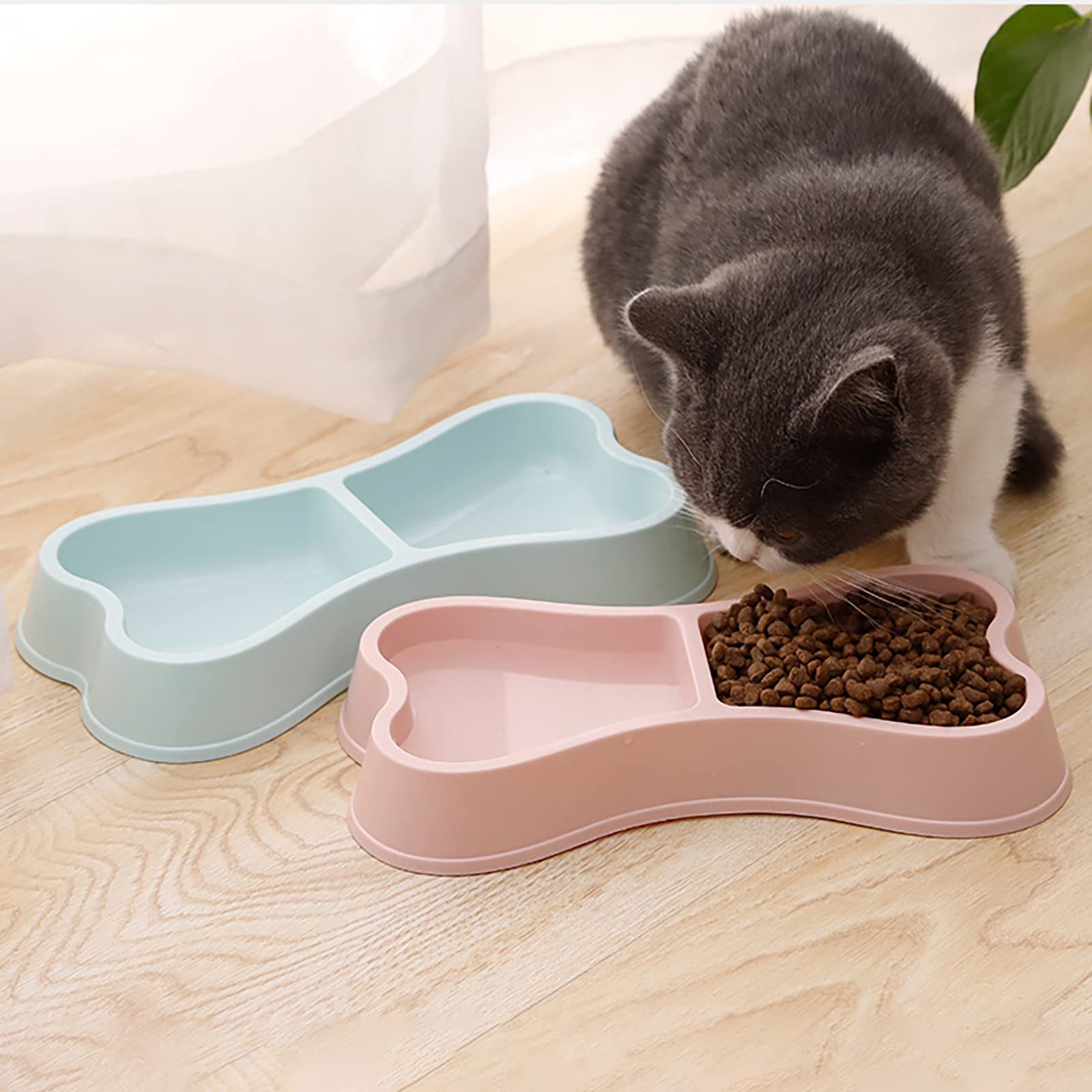 Bát ăn đôi cho chó mèo hình khúc xương được làm từ chất liệu nhựa cao cấp không gây hại, không làm ảnh hưởng đến chất lượng thức ăn, màu sắc bất mắt giúp thú cưng