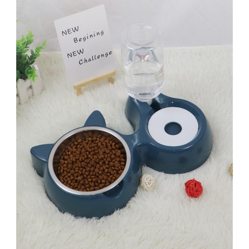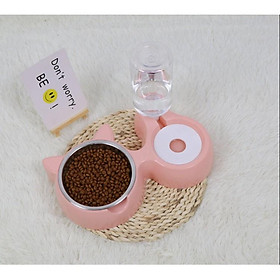 ✨Bát ăn đôi hình tai mèo lõi inox kèm bình nước tự động cho chó mèo