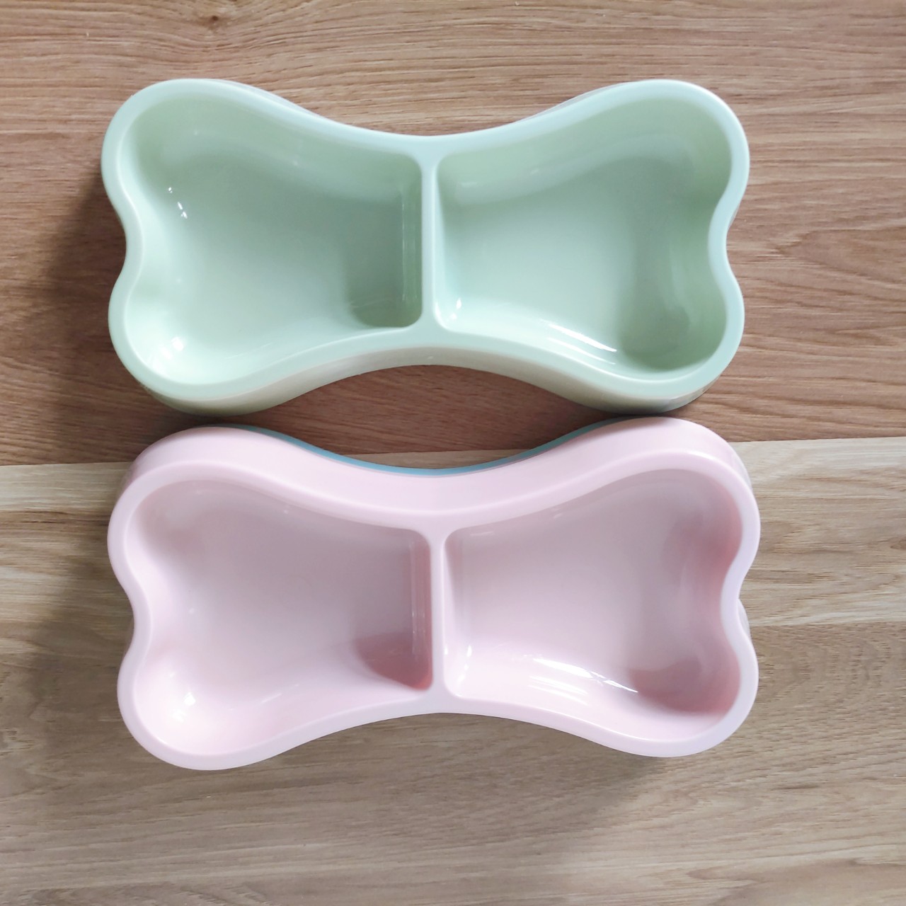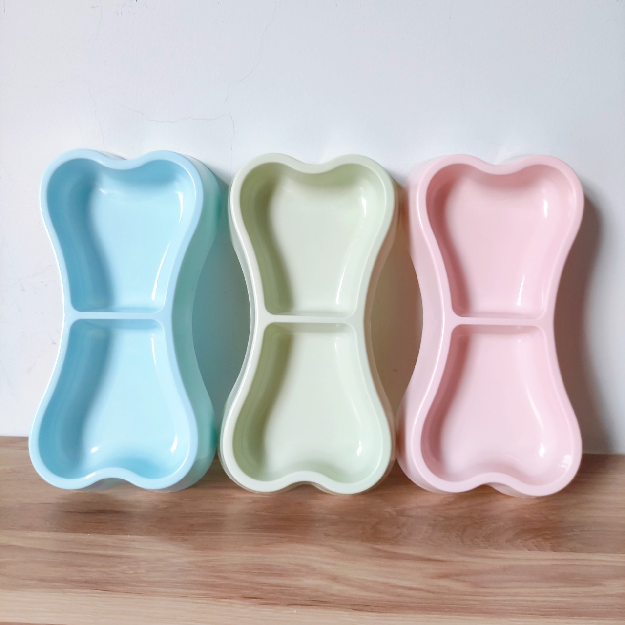 Bát nhựa đôi đựng thức ăn cho chó mèo hình khúc xương Thiết kế bát ăn chó mèo: bát đựng thức ăn được thiết kế 2 ngăn đựng khác nhau, vừa có thể đựng thức