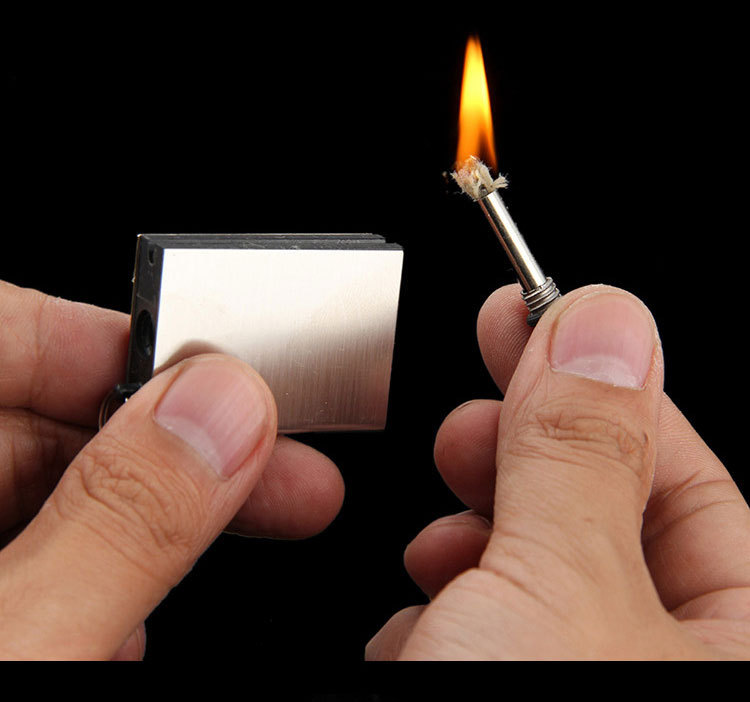 ✨Bật Lửa Diêm Xăng Sinh Tồn Vuông Xài Xăng, Hộp Quẹt Diêm Xăng Vĩnh Cửu Vuông Có Móc Treo Chìa Khóa Đính Kèm Rất Tiện Lợi