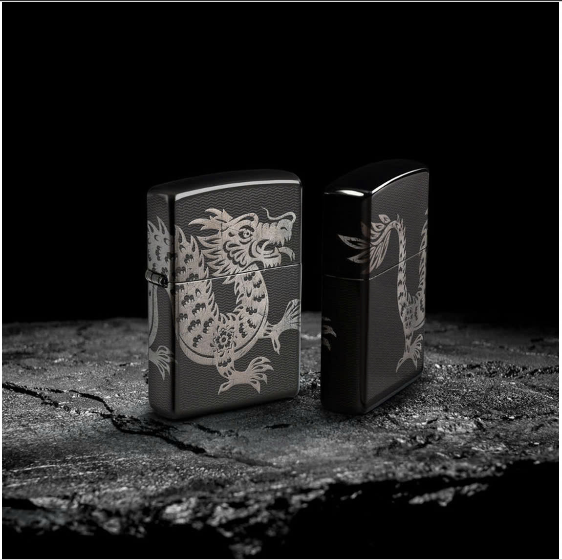 Một con rồng Châu Á truyền thống chỉ huy mọi mặt của chiếc bật lửa cổ điển High Polish Black này trong thiết kế Photo Image 360° phức tạp. Được đóng gói trong hộp quà tặng. Để có hiệu suất tối ưu, hãy đổ nhiên liệu bật lửa Zippo.