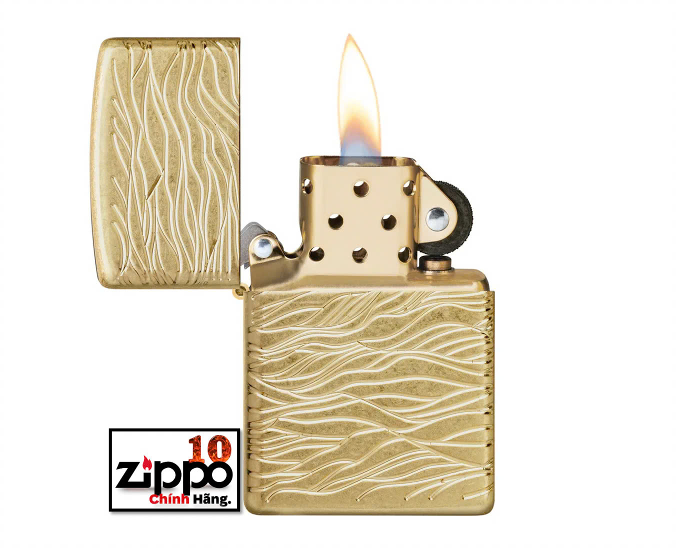 - Bật Lửa Zippo 1652b Slim Venetian Brass với thiết kế vỏ bằng chất liệu kim loại mang đến cho zippo trọng lượng nhẹ nhàng, cùng với sắc ánh bạc bao phủ kiêu sa. -