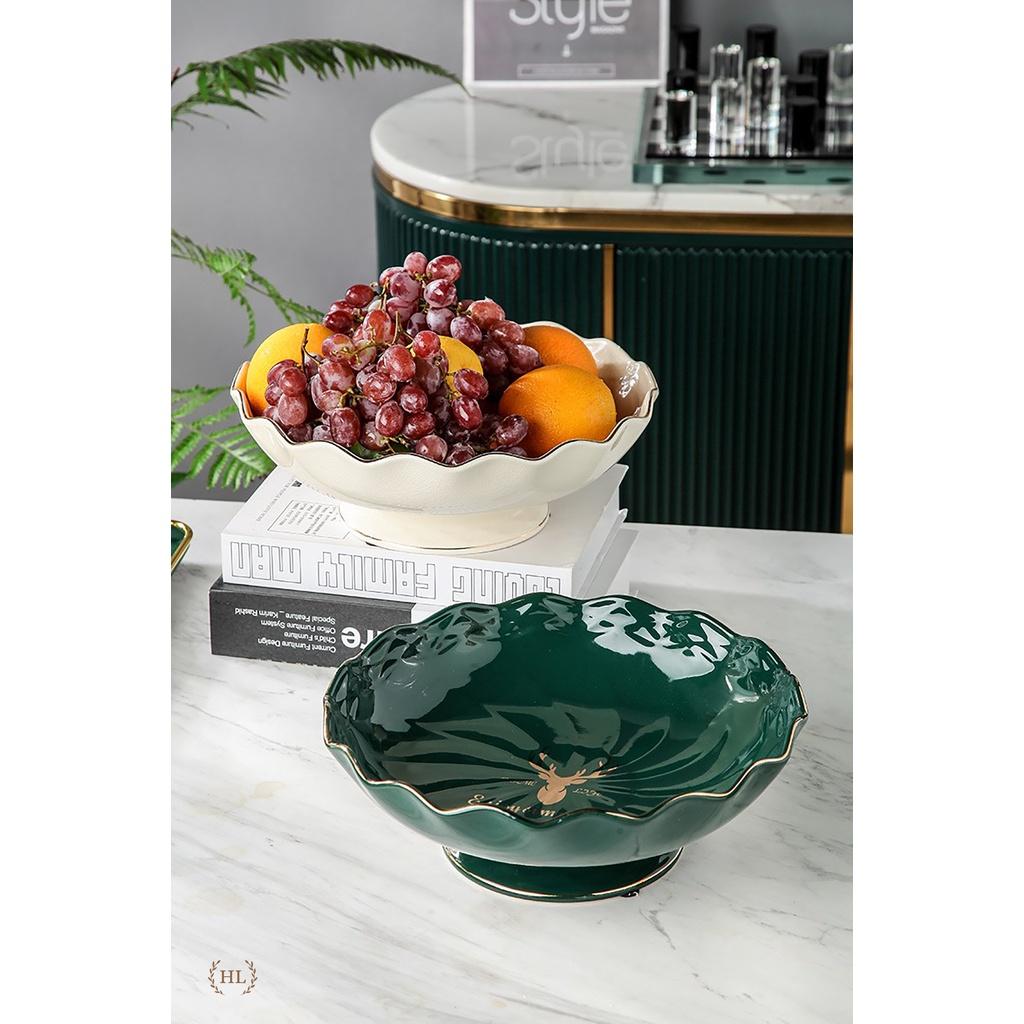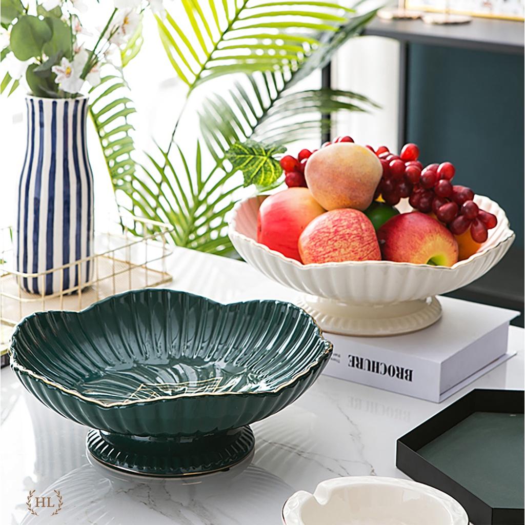 ✨BÁT SỨ CÓ CHÂN CAO CẤP | ĐĨA SỨ | RỔ SỨ ĐỰNG HOA QUẢ TRÁI CÂY CÓ CHÂN PHONG CÁCH BẮC ÂU KẺ VÀNG KIM CAO CẤP