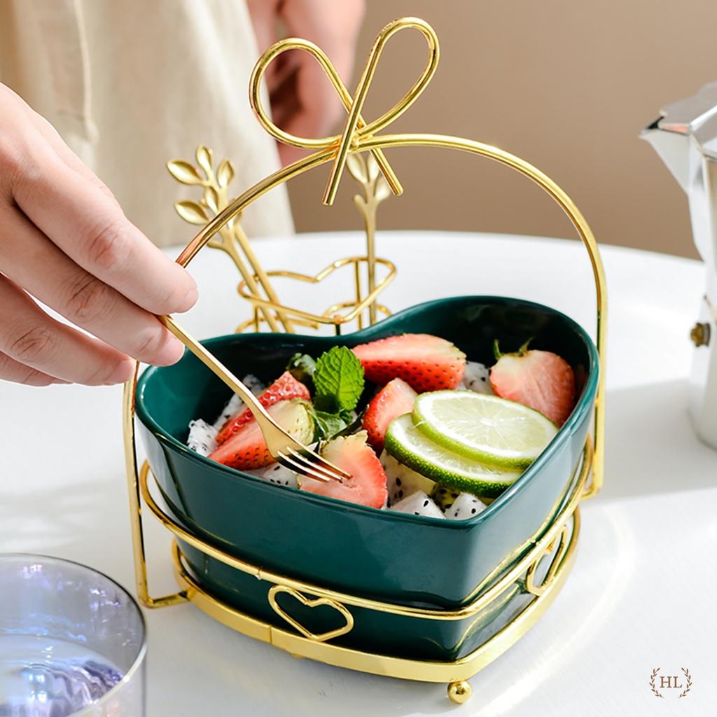 ✨Bát Sứ Hình Trái Tim Kèm Khung - 4 Nĩa Inox Vàng Kim Không Ăn Mòn Cao Cấp Home Luxury Creamic 2022