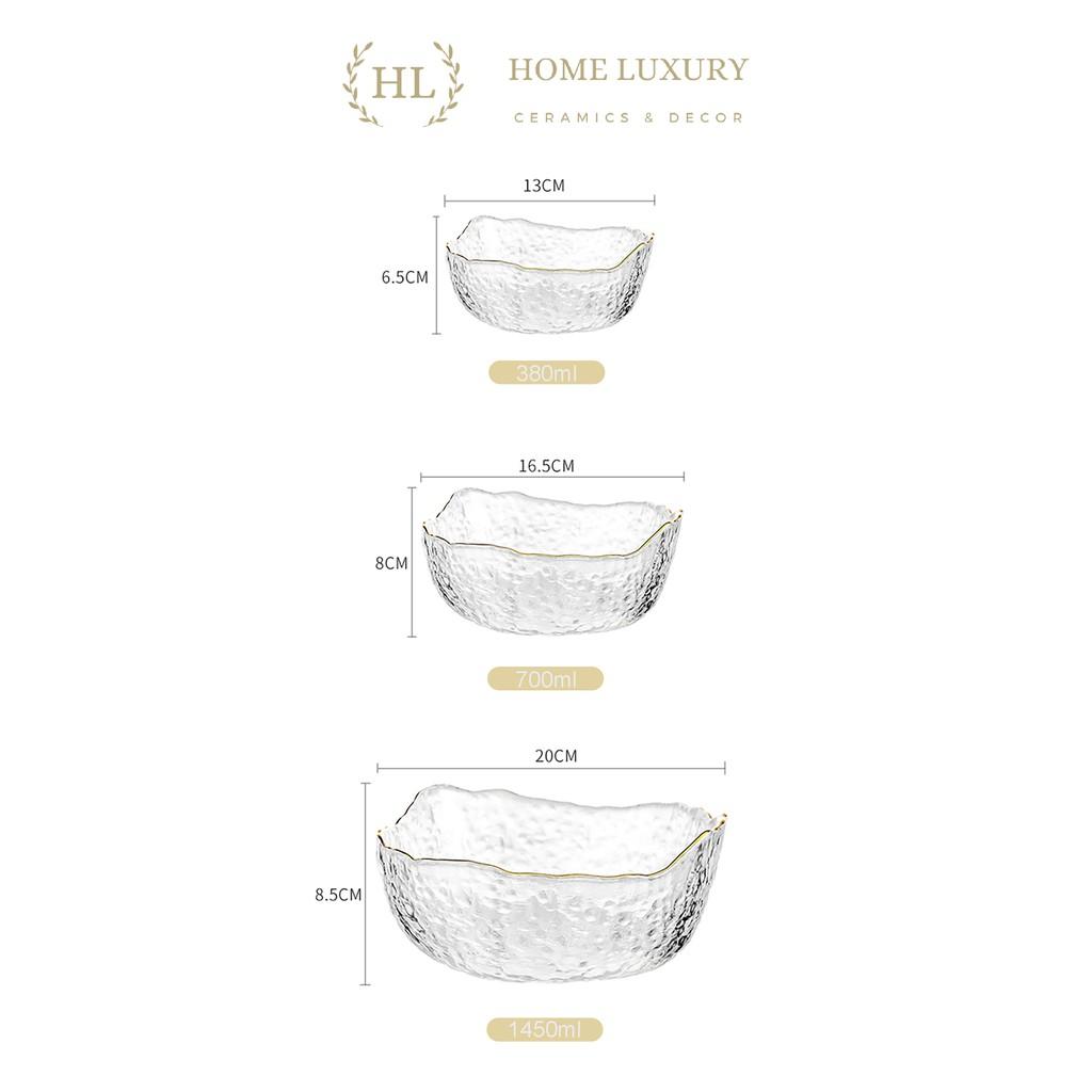 BÁT THỦY TINH CHỊU NHIỆT - CHỊU LỰC BOROSILICATE VIỀN VÀNG 24K CAO CẤP