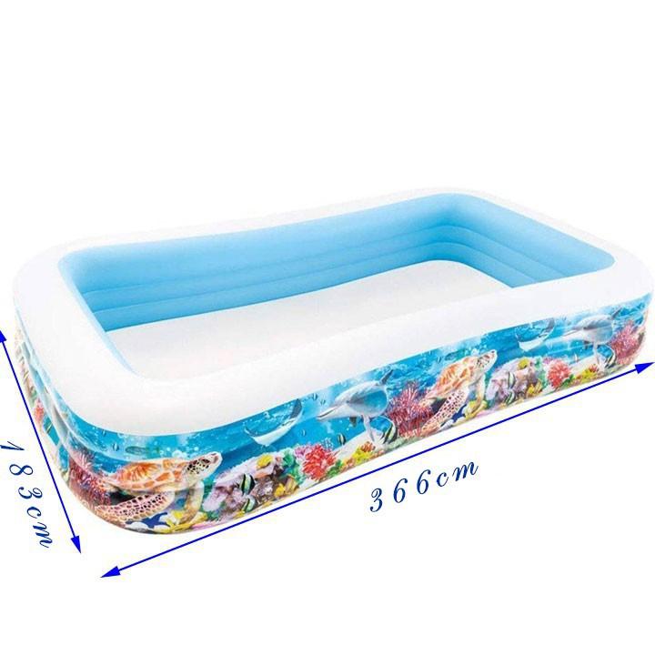 Hồ bơi thiết kế lớn có thể cho 3 bé cùng bơi Chất liệu pvc an toàn Đáy hồ bơm hơi ngồi êm ái Hồ cao 3 tầng
