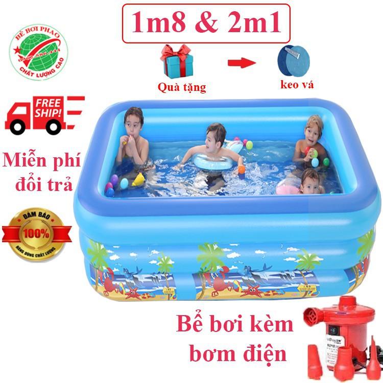 Bể phao bơi cho bé cỡ Đại TẶNG KÈM bơm điện kích thước: + 210x145x65 cm + 250x140x55 cm + 290x170x60 cm + 366x163x56 cm + 180x140x60 cm + 150x110x50 cm chất liệu: dày, đẹp,
