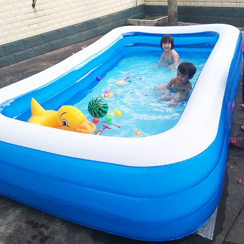 Hồ bơi thiết kế lớn có thể cho 3 bé cùng bơi Chất liệu pvc an toàn Đáy hồ bơm hơi ngồi êm ái Hồ cao 3 tầng