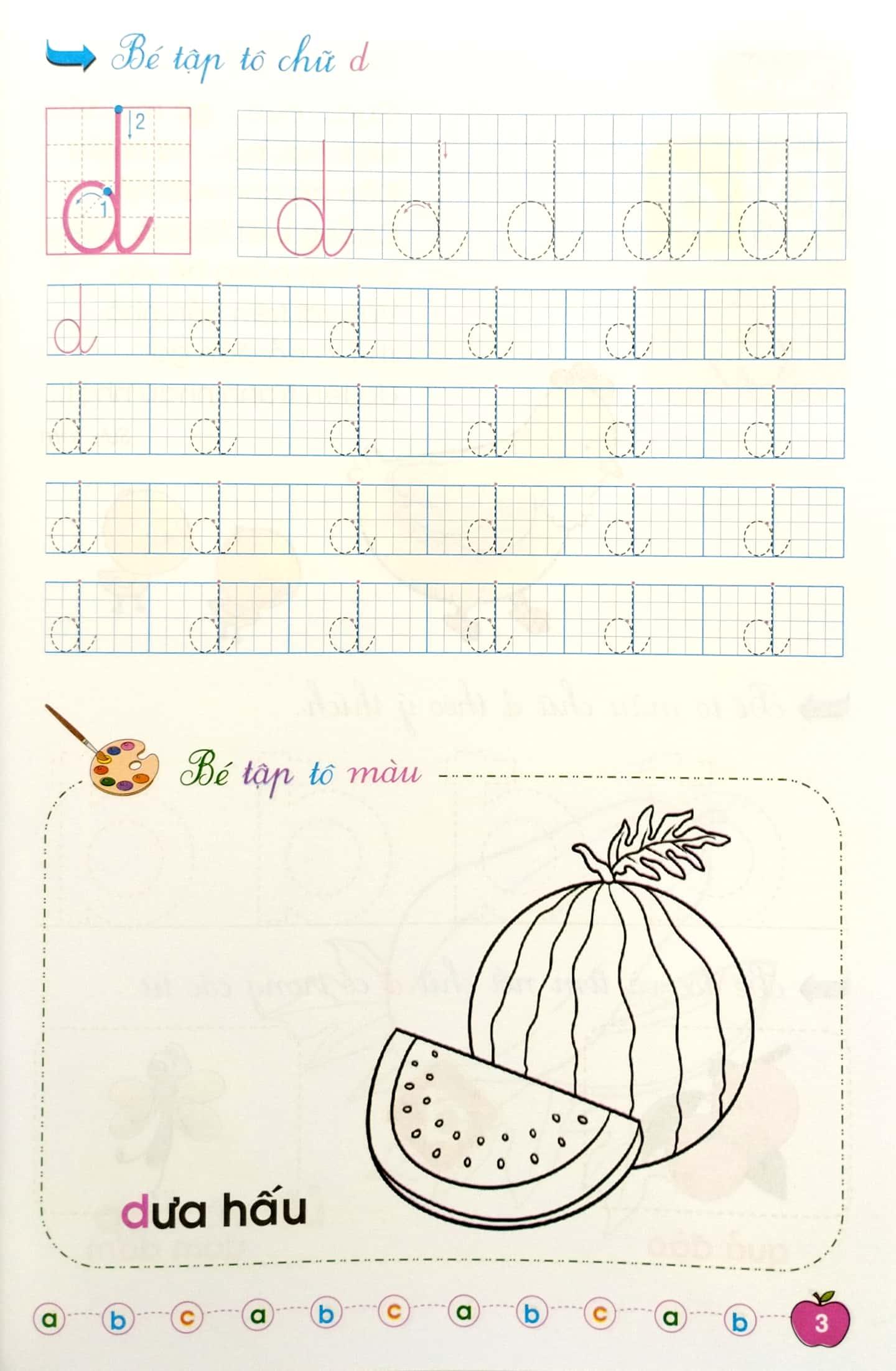 Mỗi tập nhấn mạnh vào một kỹ năng cơ bản: tô màu, tô chữ, tập phát âm, nối chữ và hình, tô nét cơ bả Ngoài ra, sách còn kèm theo hình vẽ minh họa màu sinh động, giúp các em hứng thú hơn trong học tập.