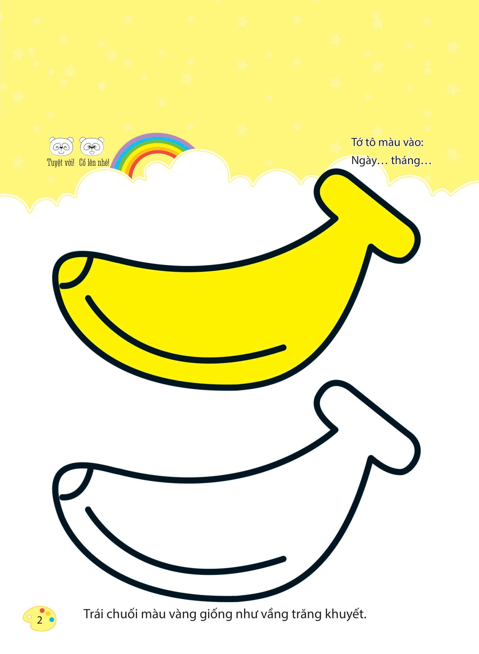 Ngoài việc tô màu theo sự sáng tạo riêng của mỗi bé, sách có gợi ý màu sắc, hình tô mẫu để các bé có thể dễ tưởng tượng và ghi nhớ được hình dạng và màu sắc.