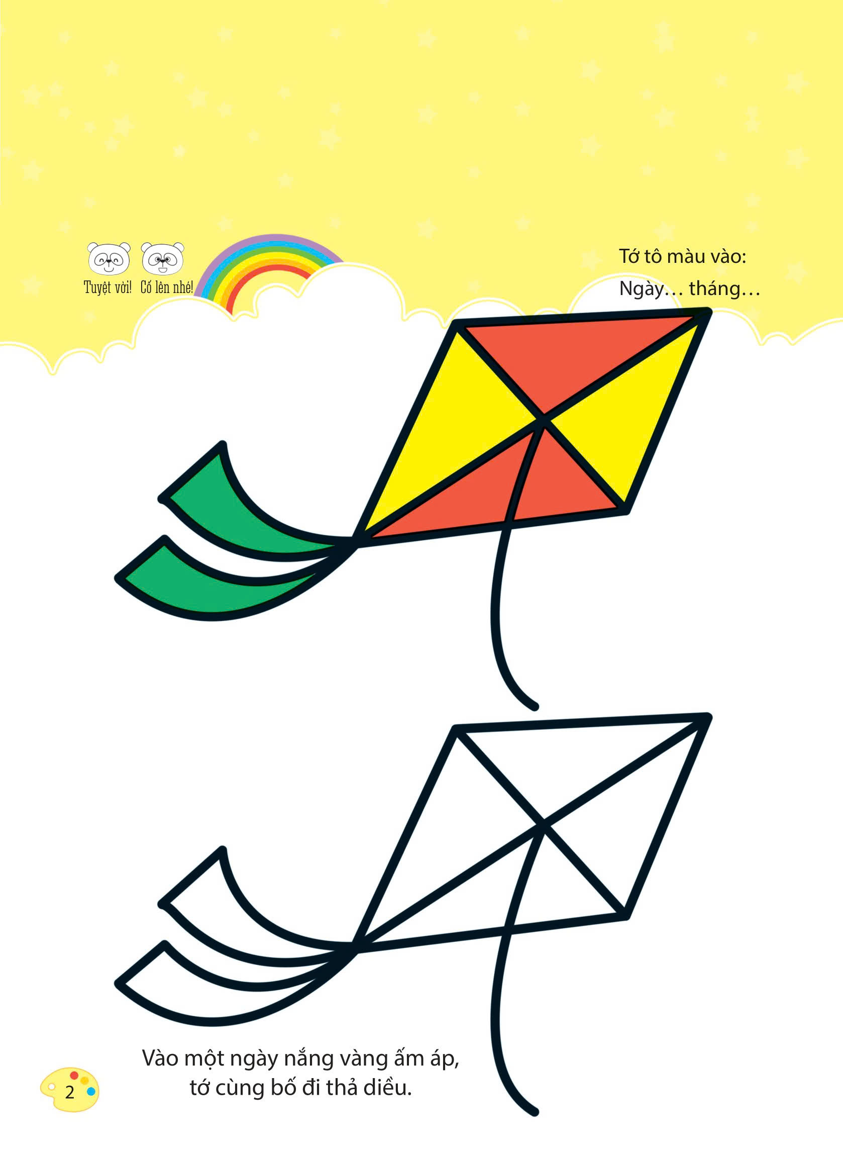 Ngoài việc tô màu theo sự sáng tạo riêng của mỗi bé, sách có gợi ý màu sắc, hình tô mẫu để các bé có thể dễ tưởng tượng và ghi nhớ được hình dạng và màu sắc.