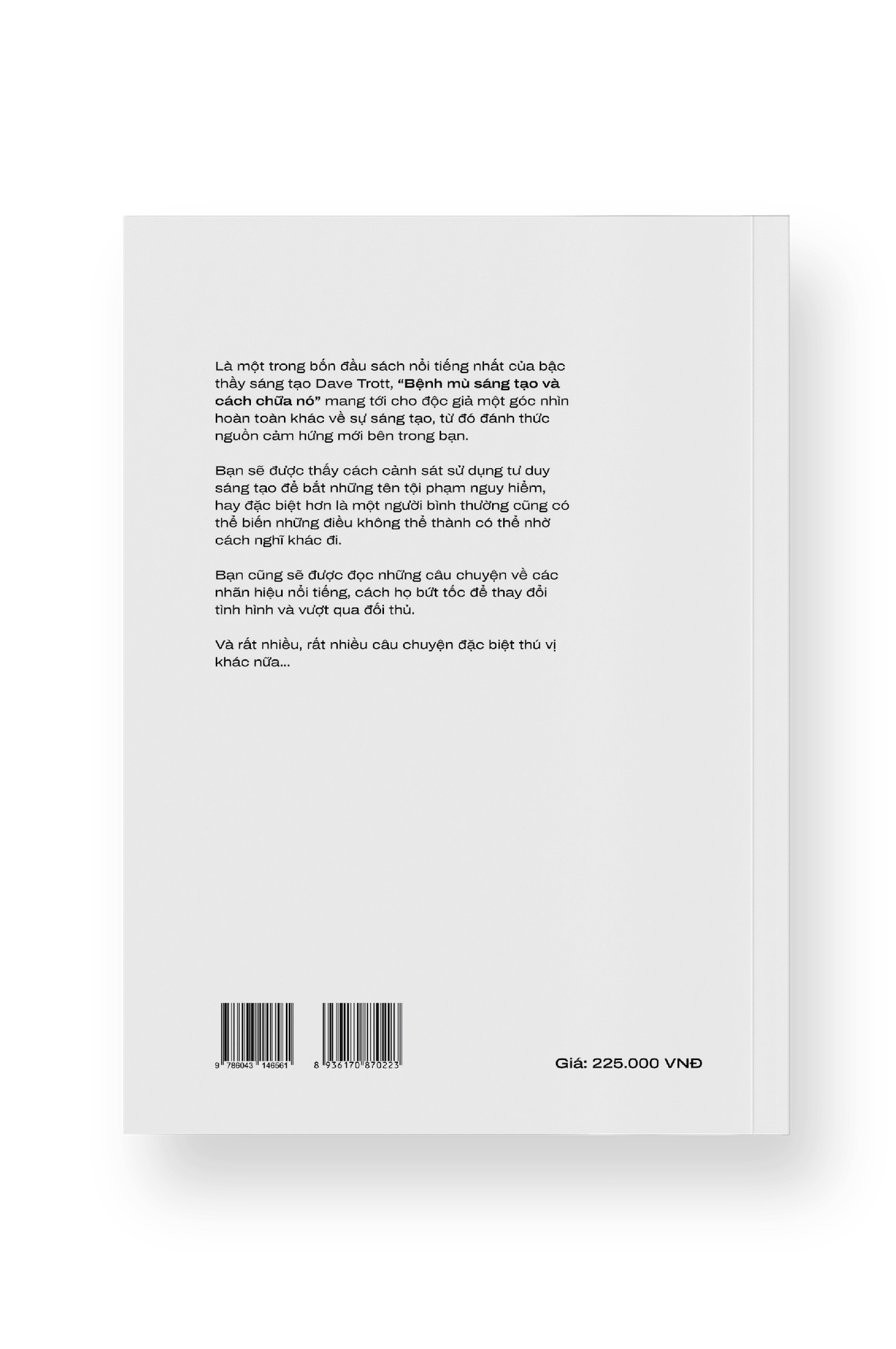 Với “Bệnh mù sáng tạo và cách chữa nó”, Dave Trott sẽ kê cho người đọc một toa thuốc với 75 phương thức tư duy để người làm sáng tạo có thể luyện tập mọi lúc mọi nơi: