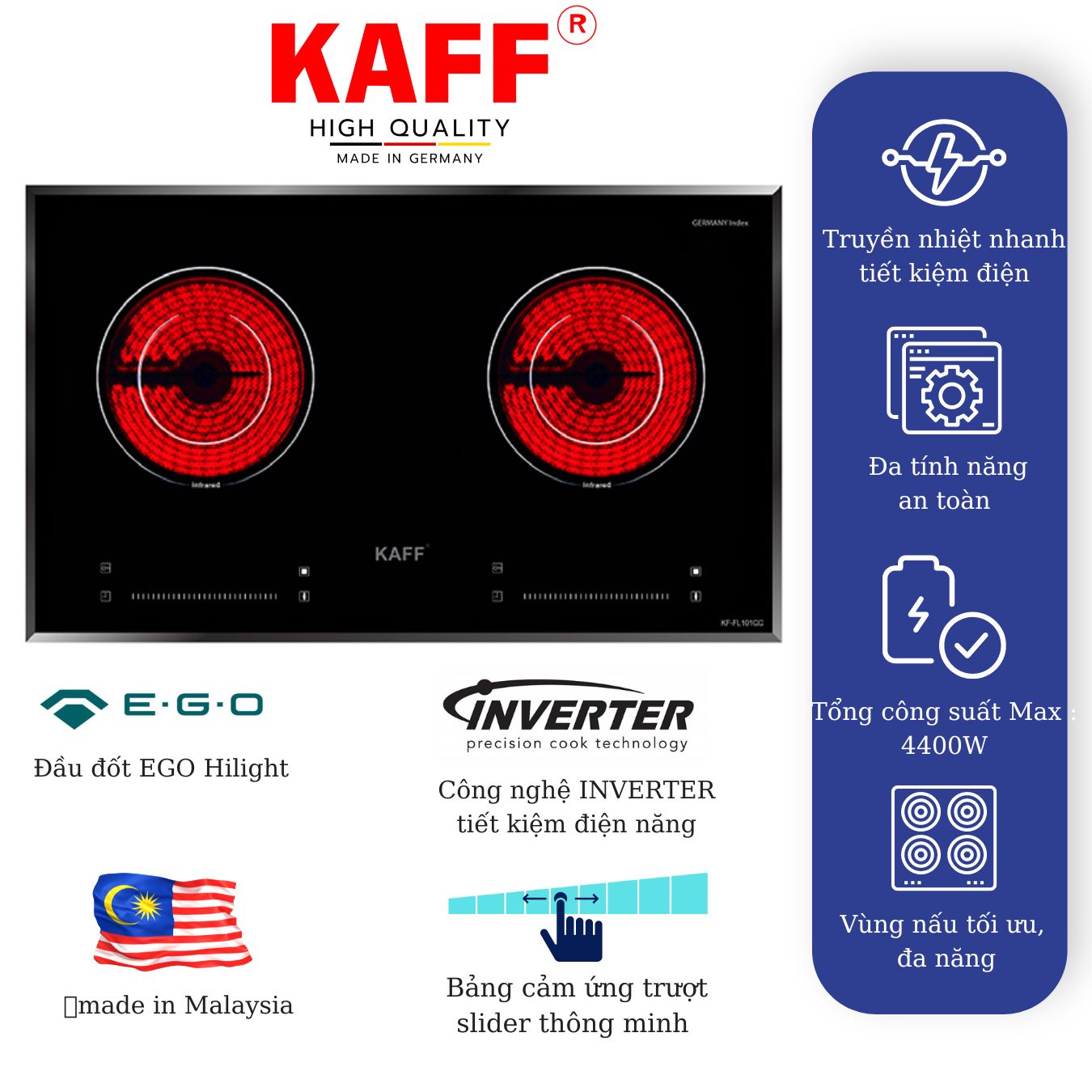 ✨Bếp âm hồng ngoại đôi nhập khẩu Malaysia KAFF KF-FL101CC - Hàng chính hãng