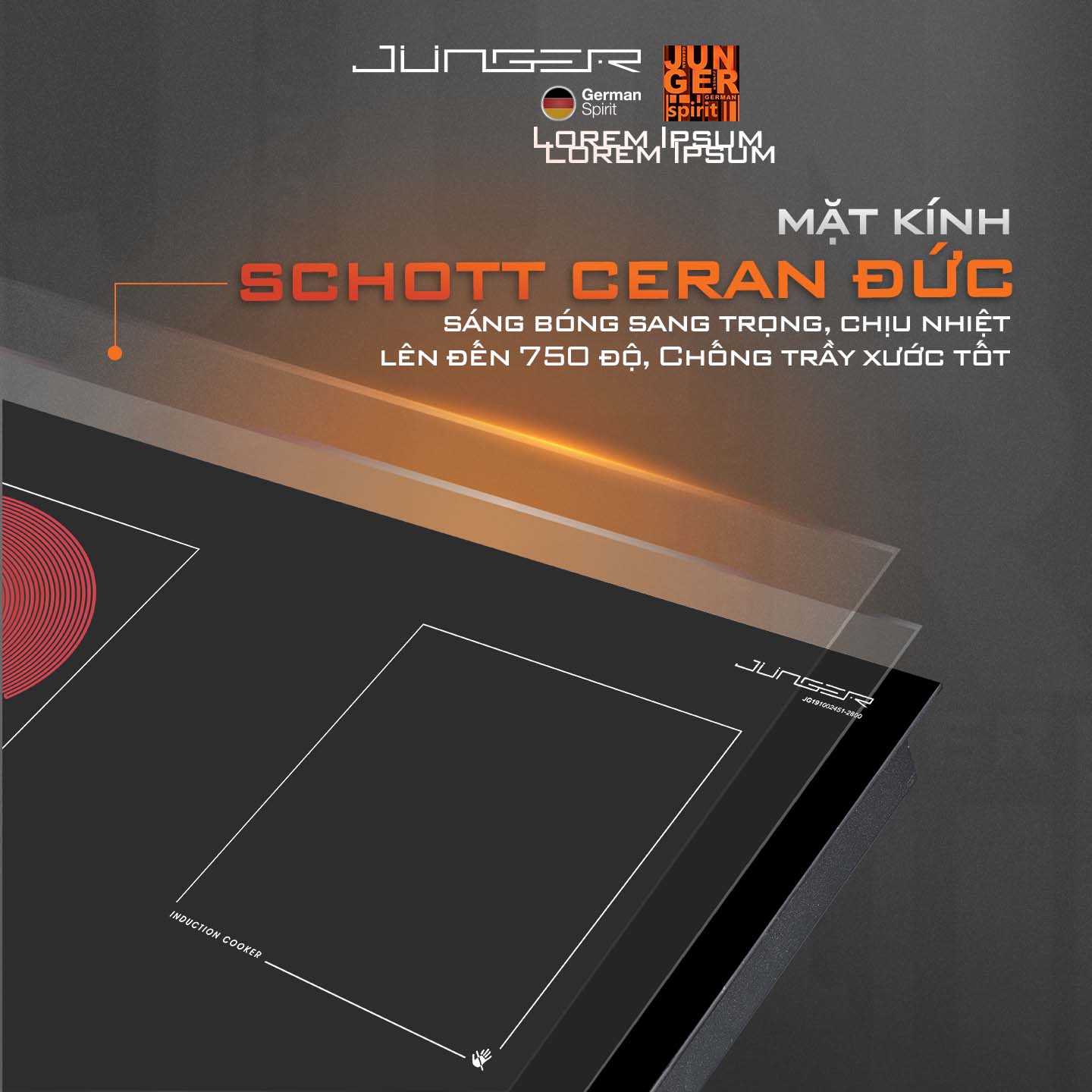 • Sử dụng kính ceramic SCHOTT- CERAN chịu nhiệt cao, chịu được va đập mạnh, khả năng chống chầy sước cao, tiết kiệm năng lượng và rất an toàn.