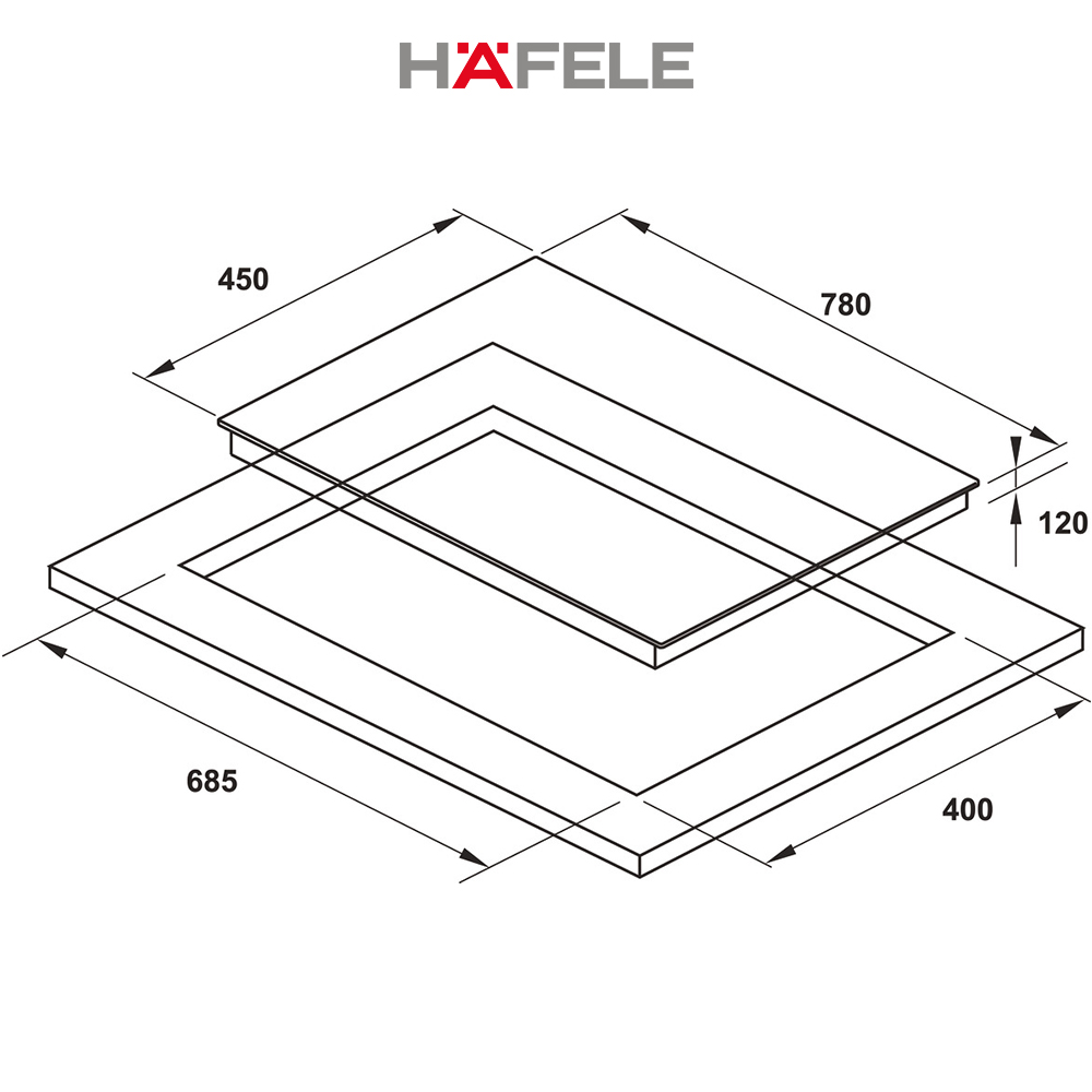 • Kích thước lắp đặt: 685R x 400S mm