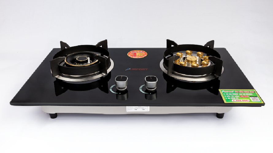 Bếp 02 lò: 01 lò to, 01 lò nhỏ Mâm chia lửa bằng đồng Hệ thống đánh lửa pin Pép hầm tiết kiệm gas Mặt kính cường lực, màu đen Kiềng gang đúc Lượng gas